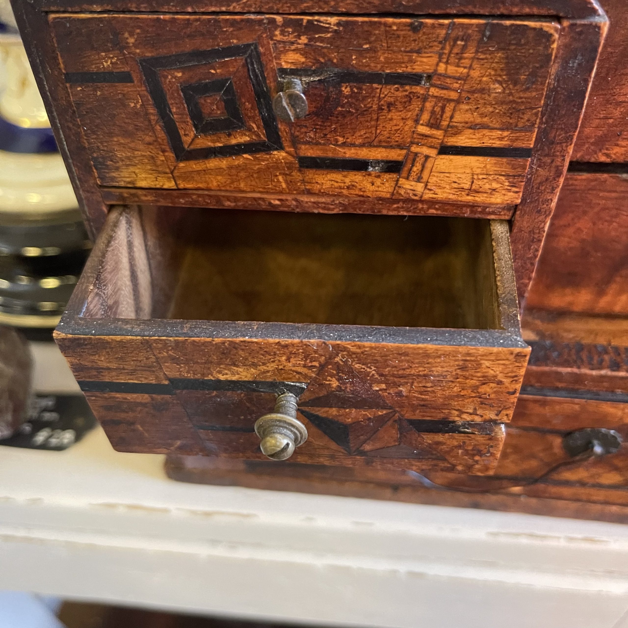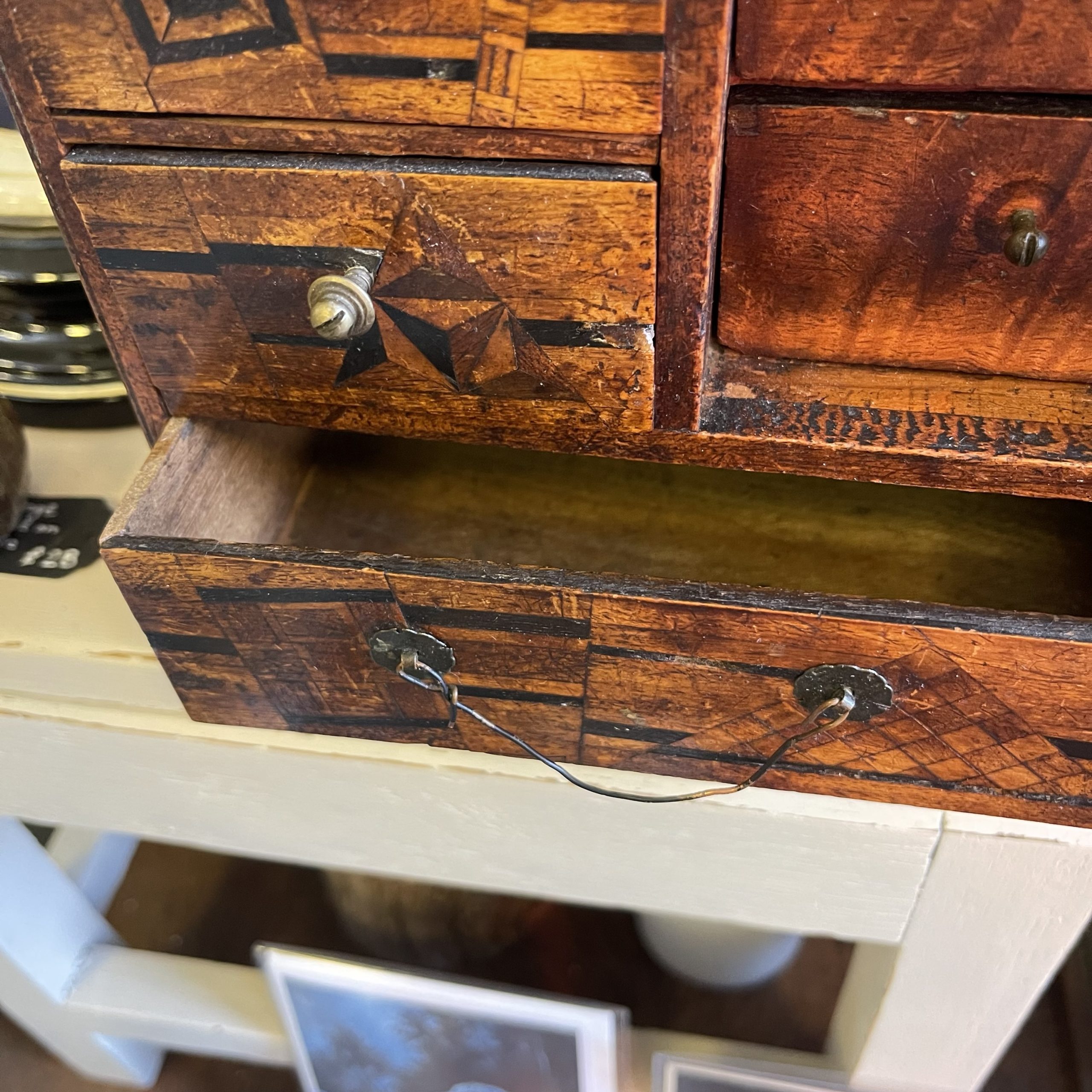 Missing Vertical sliding cover for the top right drawers but still a lovely piece and full of character