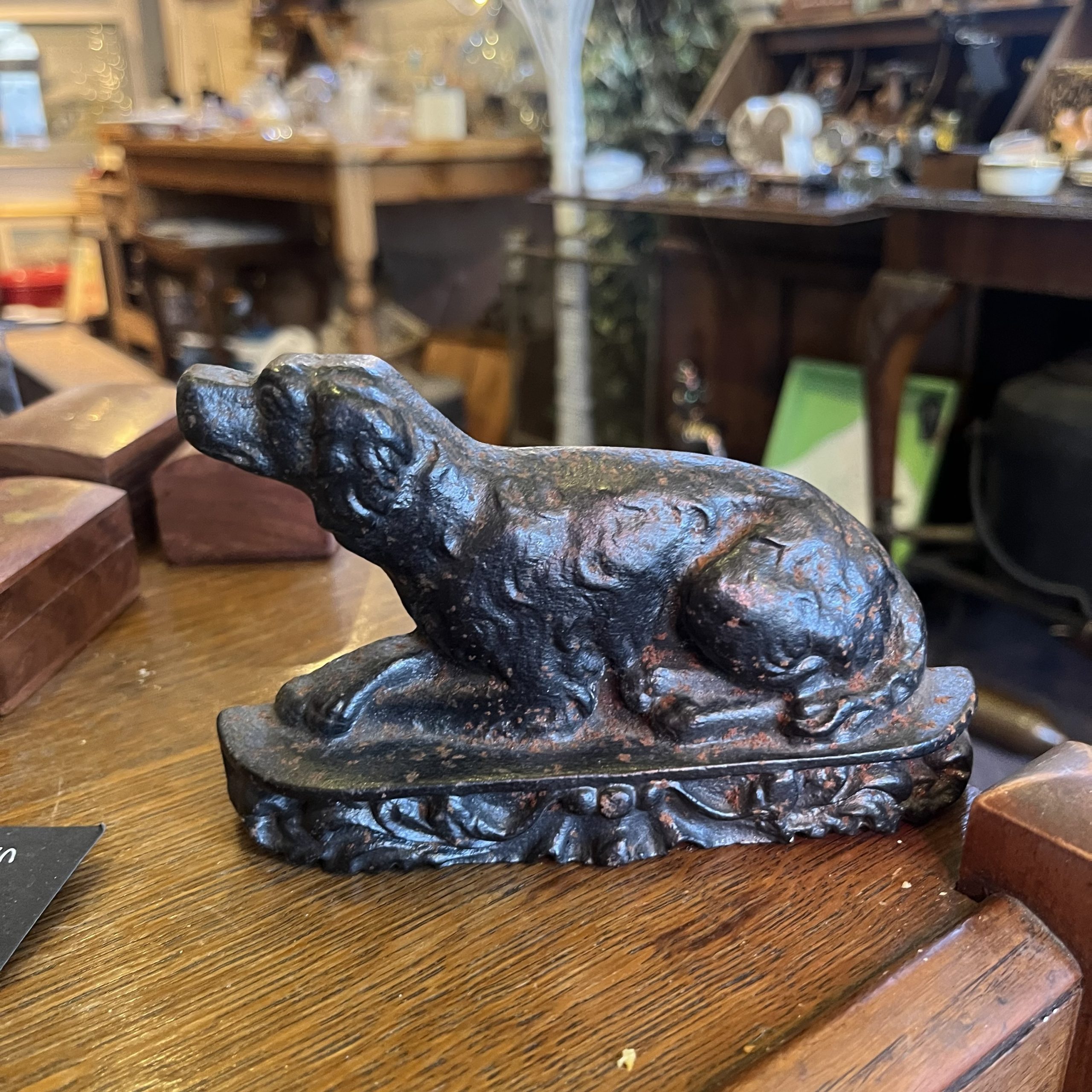 A really gorgeous cast iron reclining dog dating back to Victorian times.