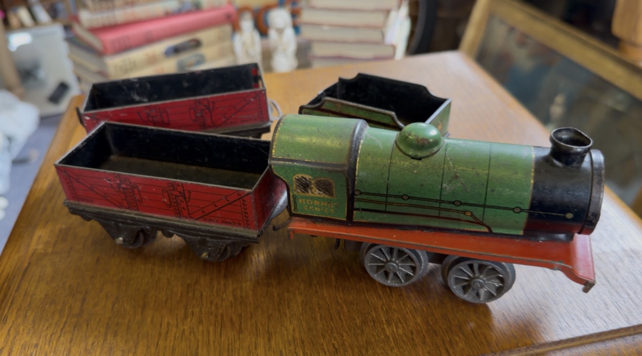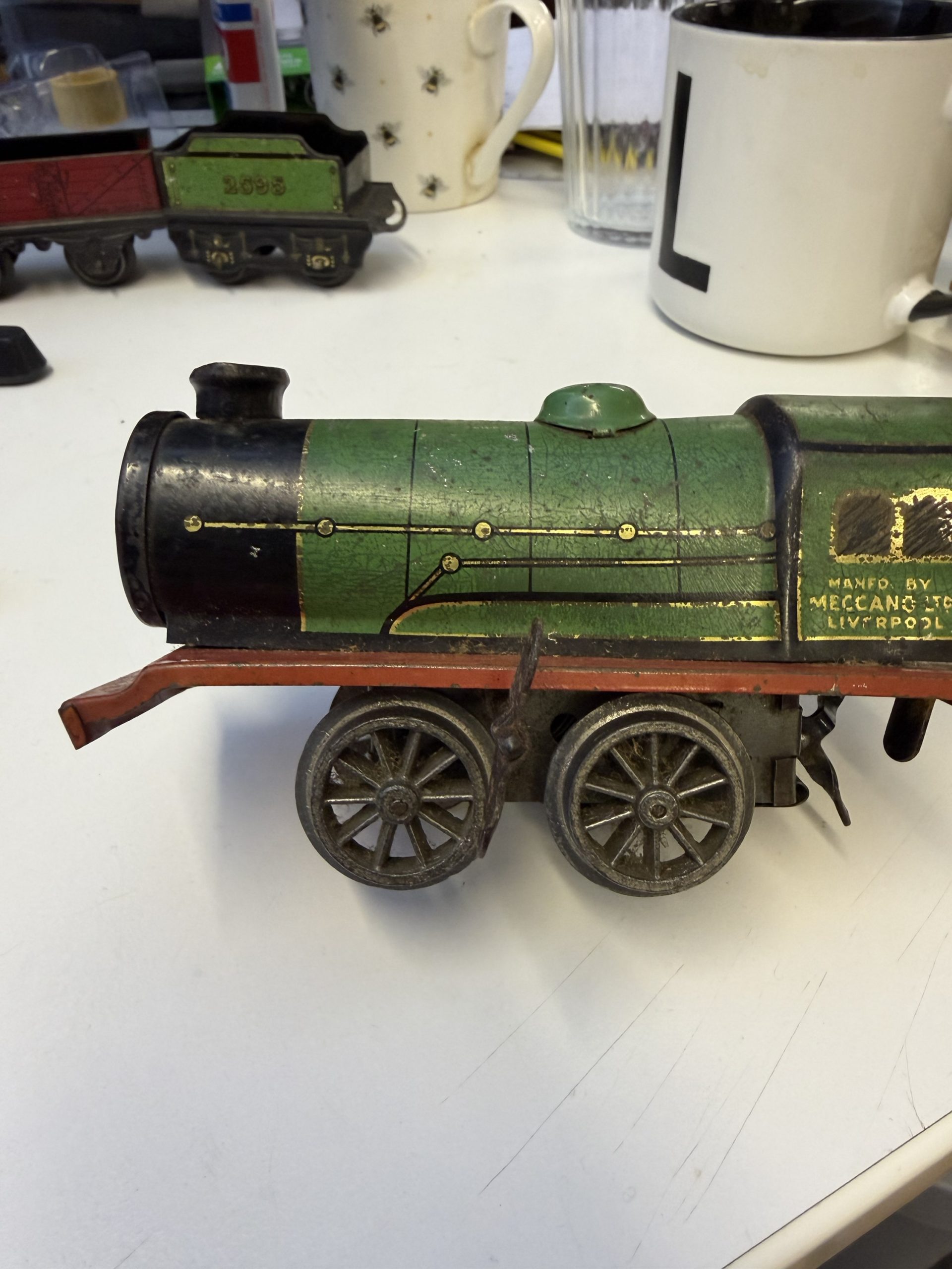 Tinplate Hornby O-gauge wind up train with 3 carriages